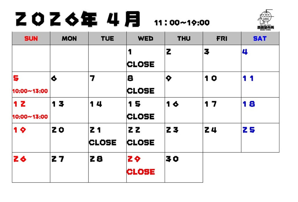 4月の臨時休業を含めたお休みと営業時間変更は以下のとおりです。